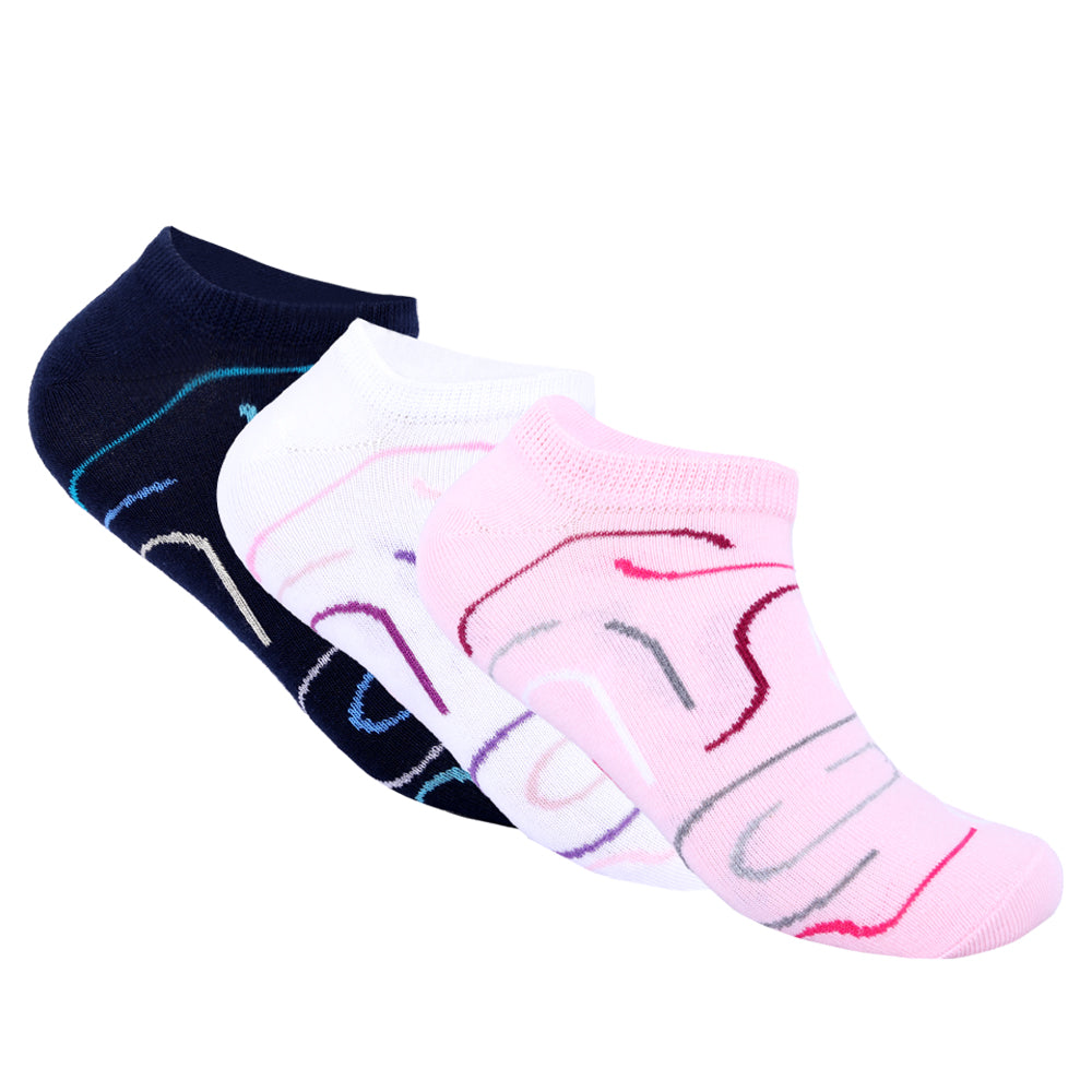 • جوارب الكاحل النشطة عبوة من 3 قطع - أزرق داكن*أبيض*وردي