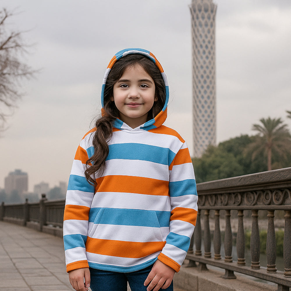 • سويت شيرت بغطاء للرأس مخطط من ACTIV - أزرق سماوي*برتقالي