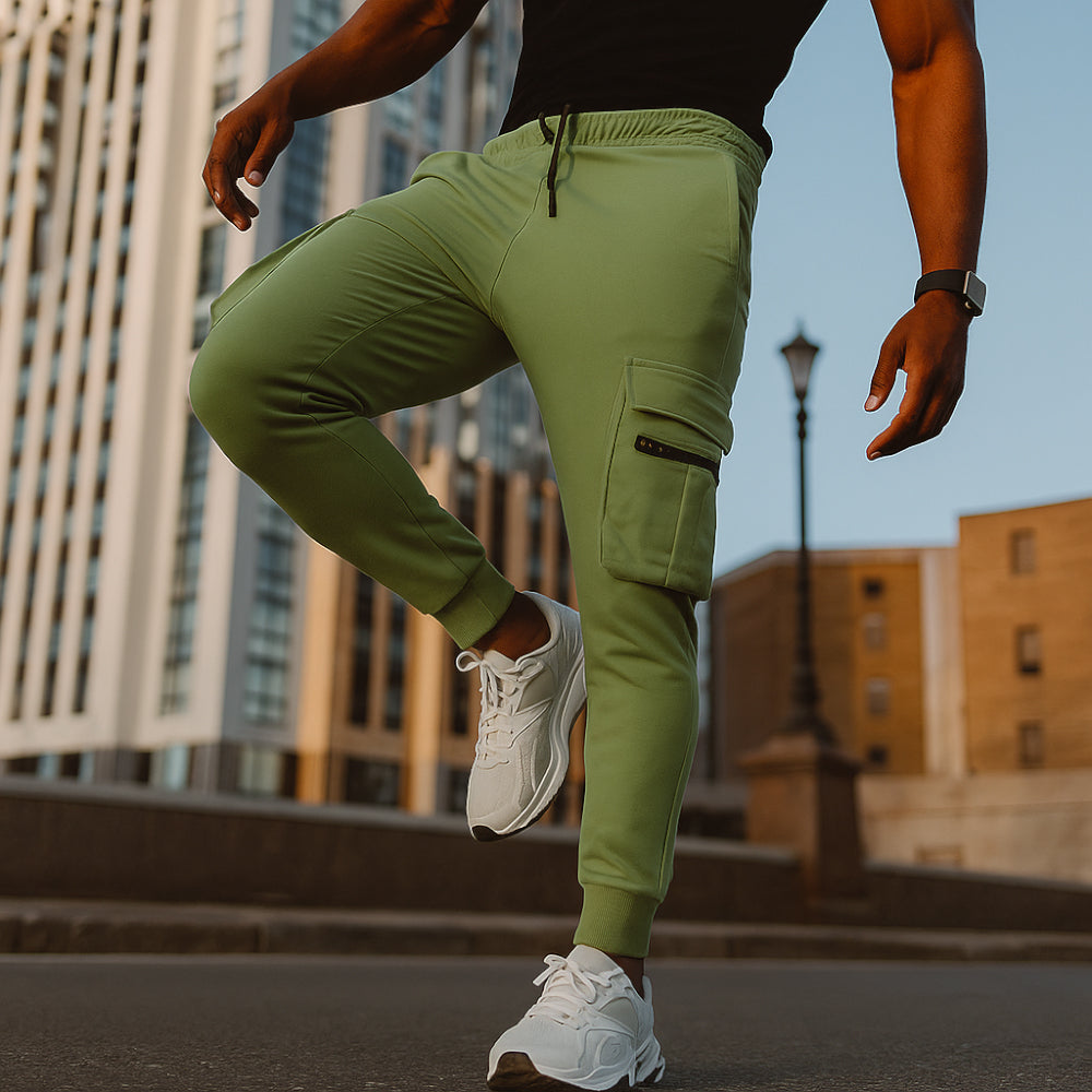 • بنطال رياضي بسحاب وجيب نشط - زيتوني