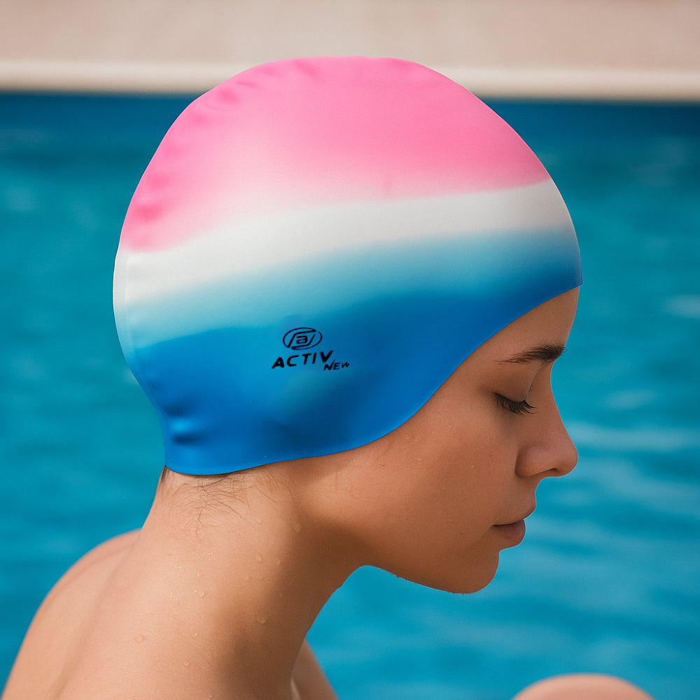 • قبعة السباحة الجديدة للبالغين - باللون الأزرق